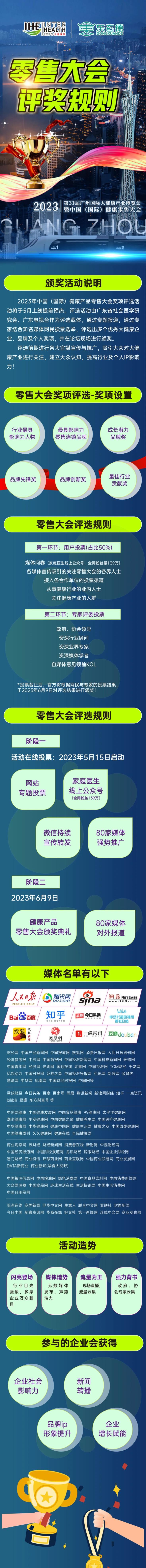 為推動(dòng)“全民健康”深入發(fā)展,表彰對(duì)大健康產(chǎn)業(yè)有突出貢獻(xiàn)的企業(yè)和人物,評(píng)選出大健康行業(yè)優(yōu)秀標(biāo)桿品牌和產(chǎn)品,中國(guó)(國(guó)際)健康產(chǎn)品零售大會(huì)組會(huì)委組織舉辦大健康產(chǎn)業(yè)評(píng)選活動(dòng)并將在大會(huì)現(xiàn)場(chǎng)舉行頒獎(jiǎng)儀式。本次評(píng)選活動(dòng)將采取“大眾+專(zhuān)家”的投票方式,保證評(píng)選結(jié)果公正權(quán)威。