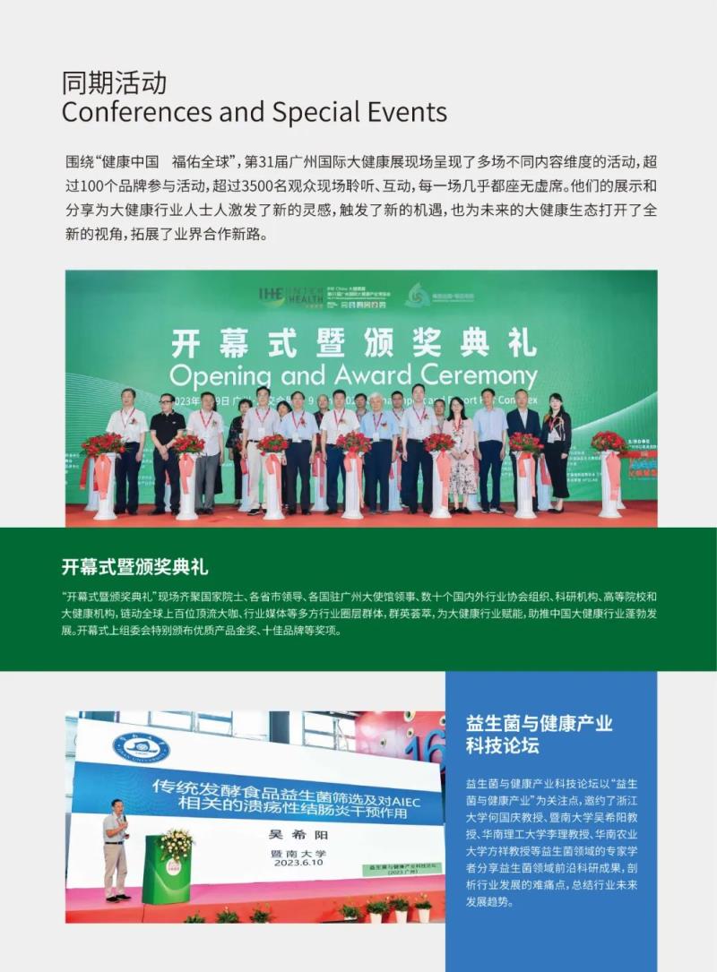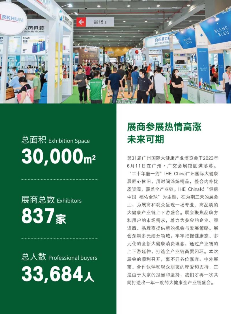 2023年6月9-11日,第31屆廣州國際大健康產(chǎn)業(yè)博覽會在廣州·廣交會展館盛大舉辦。2023 IHE China廣州國際大健康展匠心依舊,用時間淬煉精品,整合內(nèi)外優(yōu)質(zhì)資源,覆蓋全產(chǎn)業(yè)鏈,以“健康中國 福佑全球”為主題,在為期三天的展會上,為展商和觀眾呈現(xiàn)一場專業(yè)、高品質(zhì)的大健康產(chǎn)業(yè)上下游盛會。