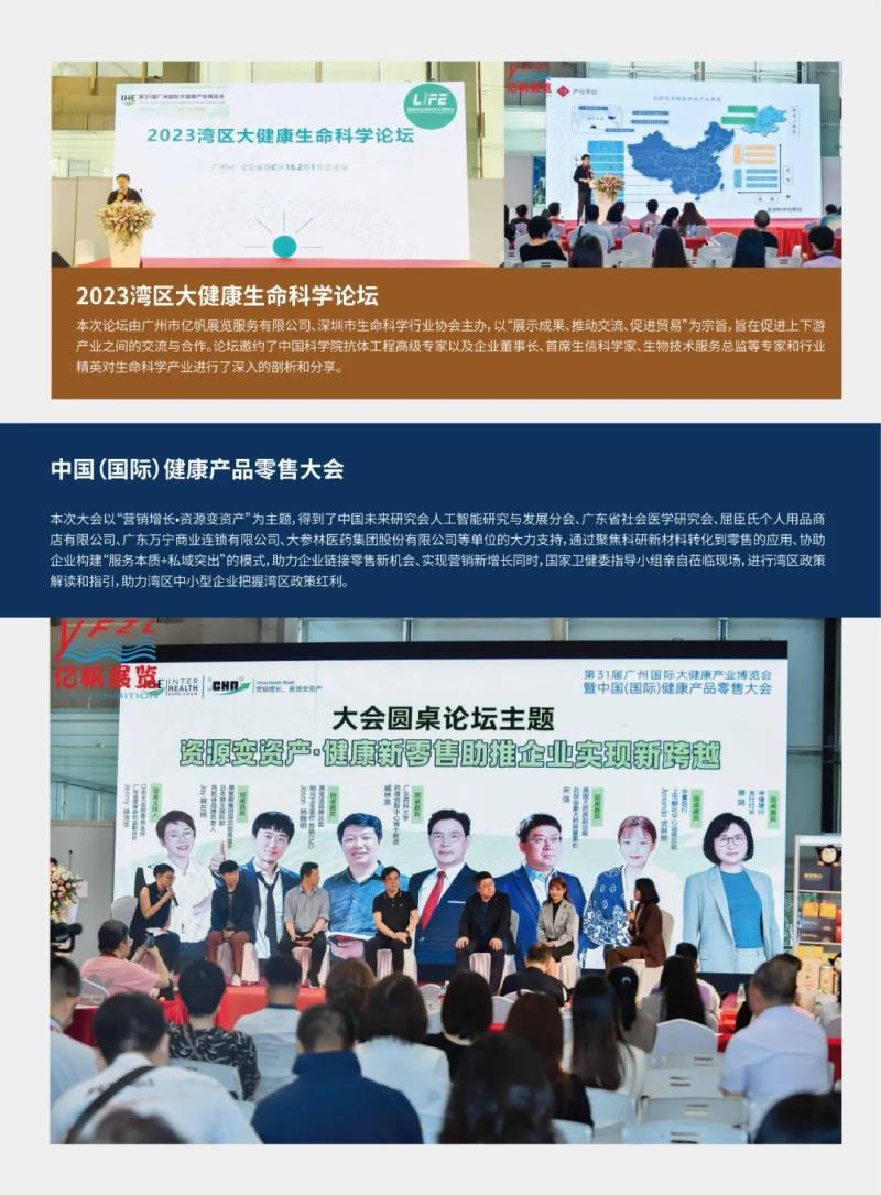 展會同期舉辦多場頗具專業(yè)性和前瞻性的論壇會議和現(xiàn)場活動?,F(xiàn)場齊聚國家院士、各省市領(lǐng)導(dǎo)、各國駐廣州大使館領(lǐng)事、數(shù)十個國內(nèi)外行業(yè)協(xié)會組織、科研機構(gòu)、高等院校和大健康機構(gòu),鏈動全球上百位頂流大咖、行業(yè)媒體等多方行業(yè)圈層群體,群英薈萃,為大健康行業(yè)賦能,助推中國大健康行業(yè)蓬勃發(fā)展。