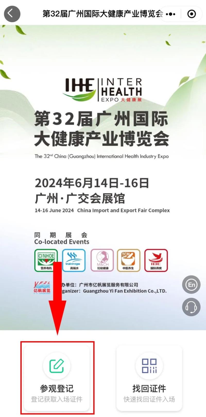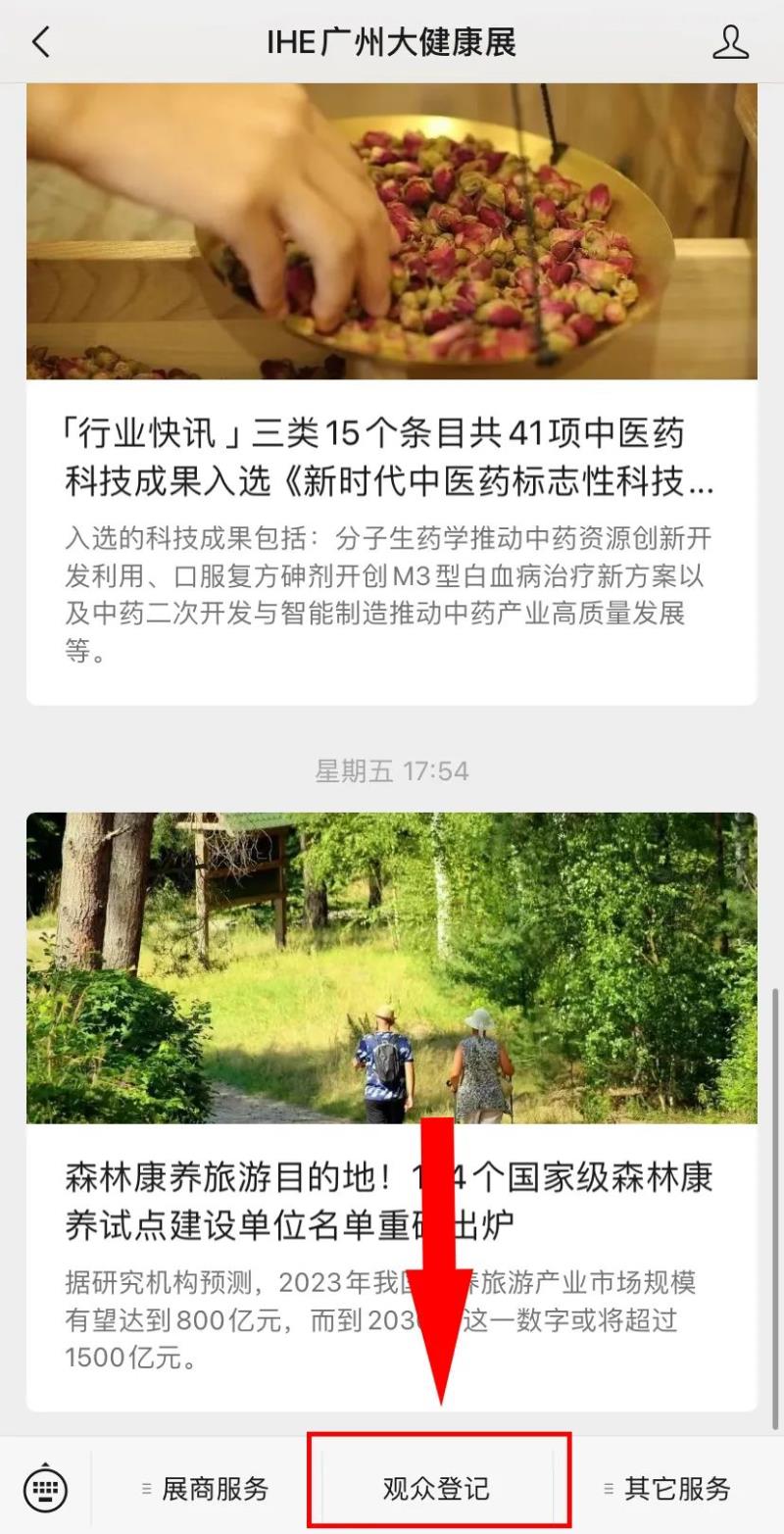 01掃碼關(guān)注公眾號STEP1:掃碼關(guān)注展會公眾號“IHE廣州大健康展”。  |