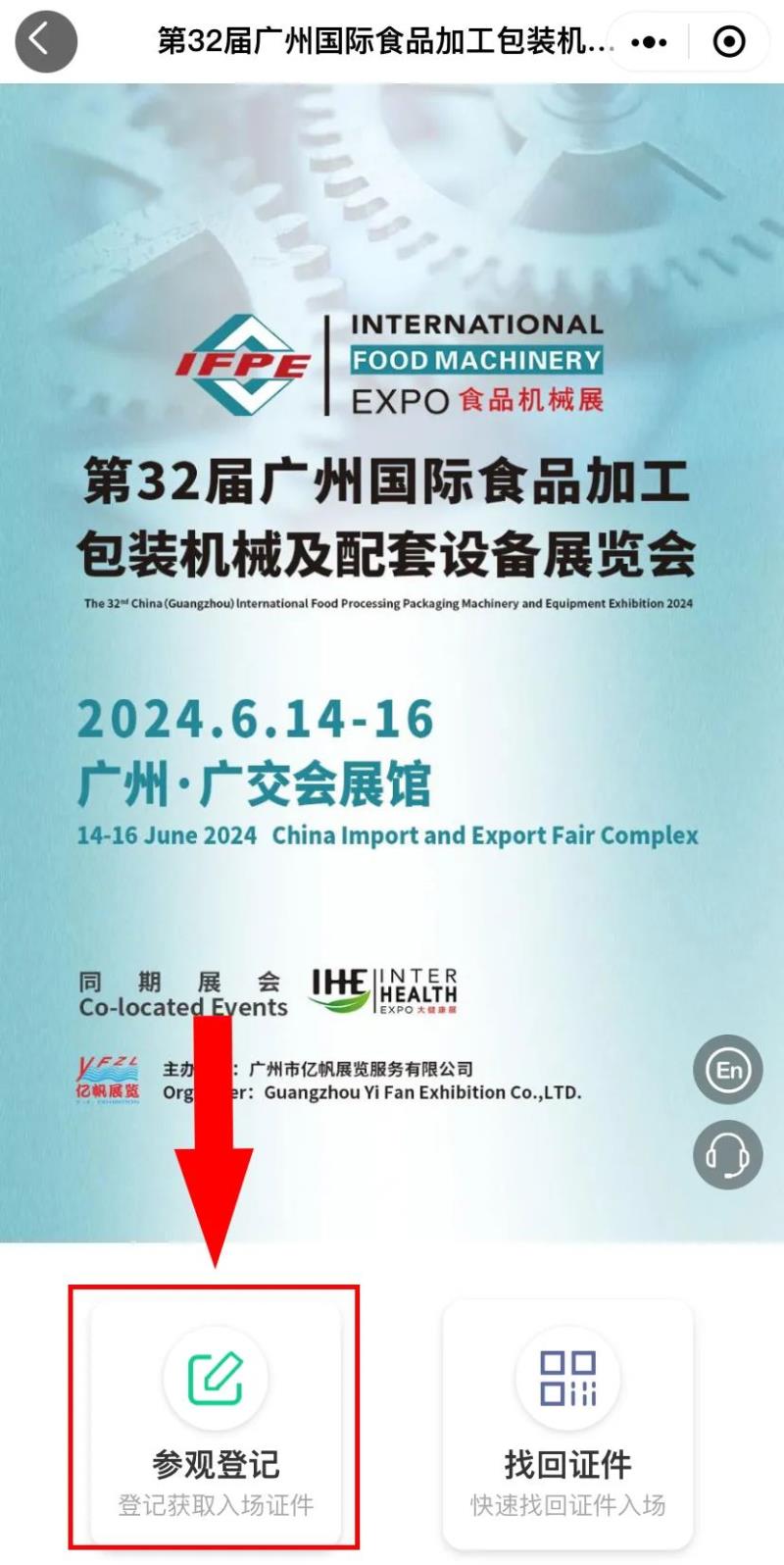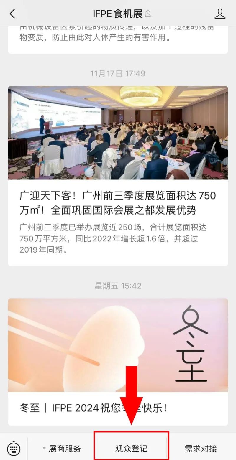 01?關(guān)注官方微信公眾號步驟1:關(guān)注官方公眾號“IFPE食機展”  |
