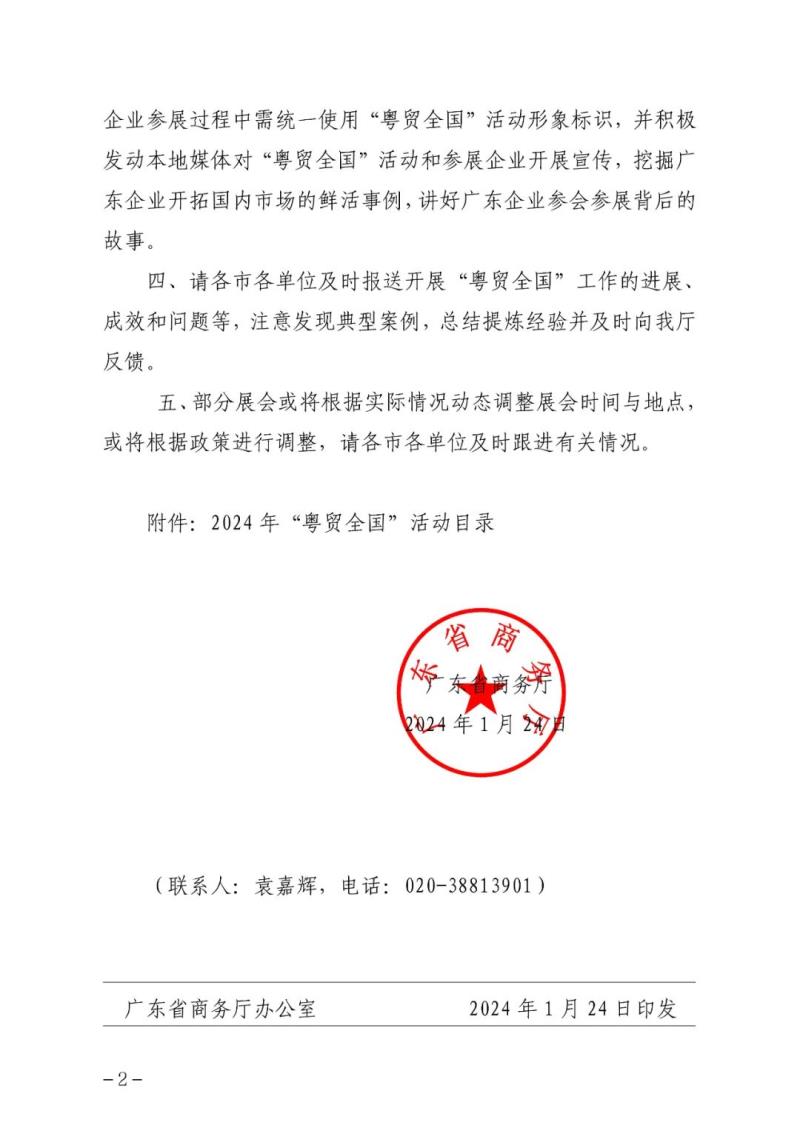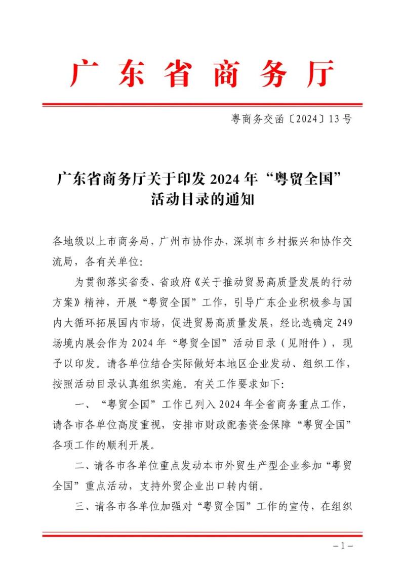 以下是《關(guān)于印發(fā)2024年“粵貿(mào)全國(guó)”活動(dòng)目錄的通知》全文: