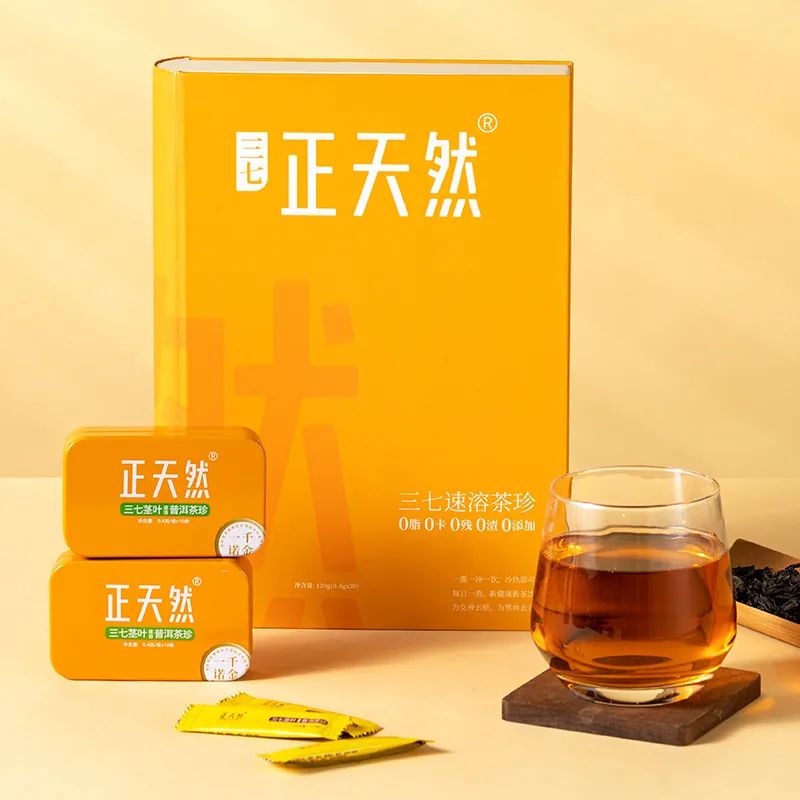 正天然三七茶珍,由云南農(nóng)業(yè)大學(xué)、農(nóng)科院等專家10多年潛心研發(fā)成果,將超微化生物酵提技術(shù)(該技術(shù)已獲國家保密配方專利申請,申請受理專利號: ZL 201110108870.7);200公斤三七莖、葉、花、果、塊、根才能精萃1公斤三七茶珍,0脂0糖0殘0渣0添加,一撕一沖,冷熱即可,金黃湯色,方便即飲。