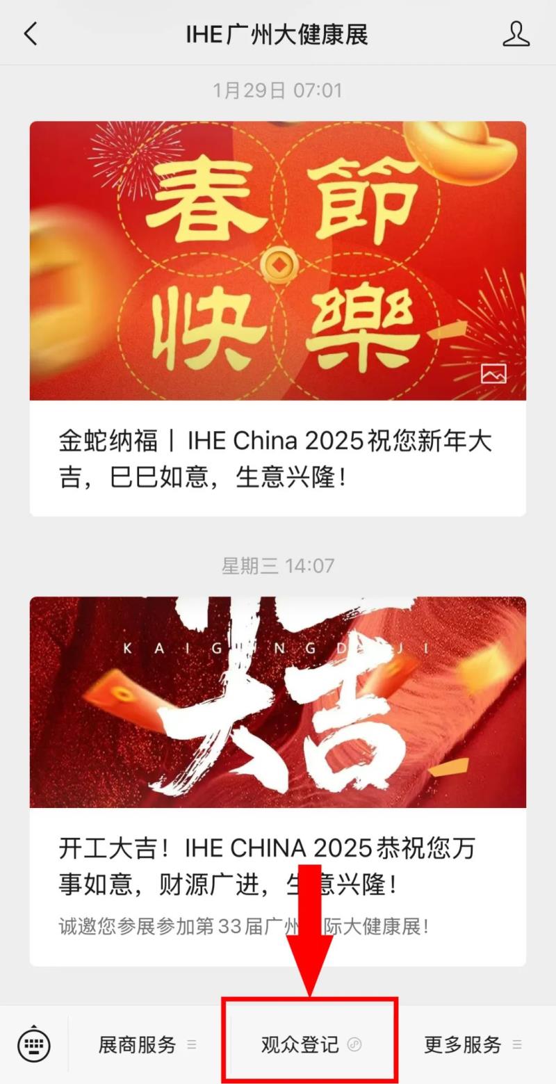 01掃碼關(guān)注公眾號STEP1:掃碼關(guān)注展會公眾號“IHE廣州大健康展”。 |