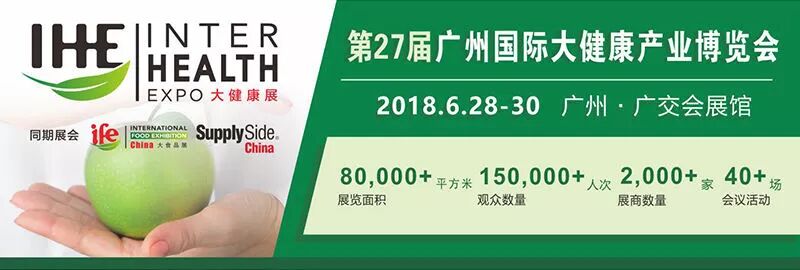 廣州國際大健康產(chǎn)業(yè)博覽會(IHE China大健康展),是知名的國際性B2B專業(yè)展,已舉辦至第27屆。IHE China大健康展擁有龐大的參展商及采購商資源,是亞太地區(qū)頗具規(guī)模的大健康產(chǎn)業(yè)盛會。2017年起,展會與世界知名的會展機構(gòu)英富曼會展集團強強聯(lián)手,憑借其強大的國際網(wǎng)絡及多個營養(yǎng)健康領域旗艦展的資源(如美國天然有機產(chǎn)品展Natural Product Expo等),為大健康產(chǎn)業(yè)專業(yè)人士提供從原料到成品,從生產(chǎn)到銷售的一站式全產(chǎn)業(yè)鏈國際交流平臺。