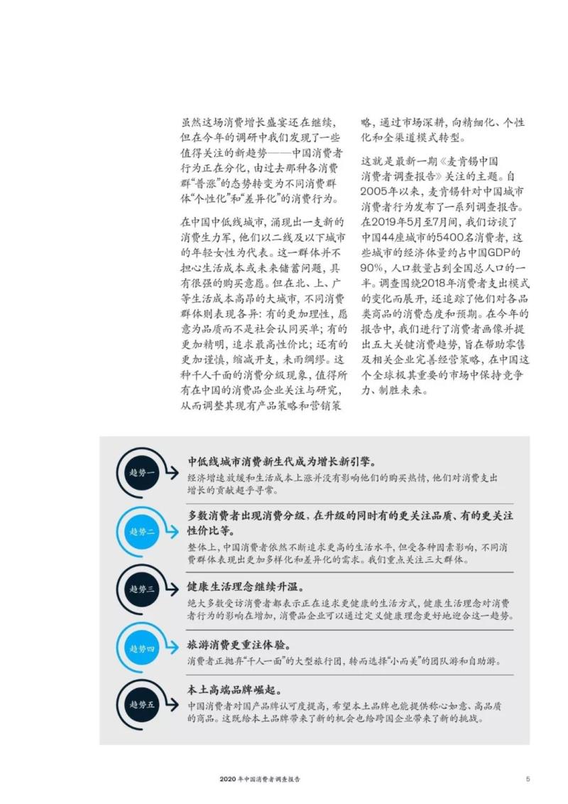 自2005年起,麥肯錫針對中國消費(fèi)者行為進(jìn)行了一系列持續(xù)性研究。在最新一期報告中,我們對消費(fèi)者進(jìn)行畫像并提出了五大值得關(guān)注的消費(fèi)趨勢。
