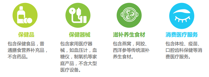 大健康消費(fèi)主要包括以下四個(gè)方面:一是保健品,二是保健器械,三是滋補(bǔ)養(yǎng)生食材,四是消費(fèi)醫(yī)療服務(wù)。