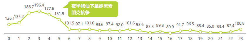 另一方面,在熬夜的道路上一往無前,卻不放棄治療。0-6點(diǎn)購買褪黑素的目標(biāo)消費(fèi)人群指數(shù)均高于100,深夜購買褪黑素的行為比整體人群更為突出。