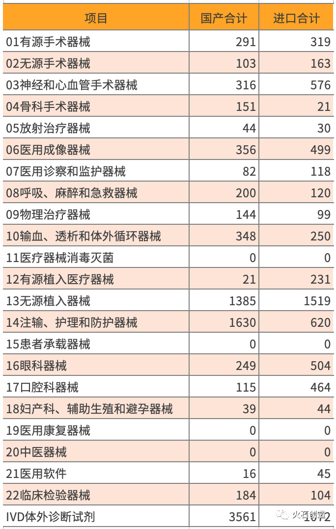根據(jù)火石創(chuàng)造數(shù)據(jù)庫顯示,近五年進(jìn)口和國產(chǎn)器械獲批數(shù)量比較,進(jìn)口器械獲批數(shù)量開始出現(xiàn)逐年降低且幅度較大,而國產(chǎn)器械的獲批數(shù)量穩(wěn)中有升,說明國產(chǎn)替代開始加速;另外,根據(jù)分類來看,國產(chǎn)二類遠(yuǎn)遠(yuǎn)大于進(jìn)口二類獲批數(shù)量,說明在中低端器械,國產(chǎn)基本實現(xiàn)替代,而國產(chǎn)三類與進(jìn)口三類差距不大,但國產(chǎn)三類開始出現(xiàn)增長趨勢,說明高端器械市場,國產(chǎn)替代在發(fā)力加速。見表1。