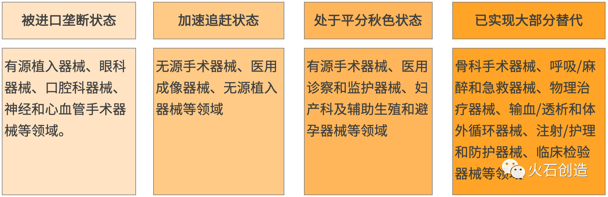 圖2 目前我國醫(yī)療器械領(lǐng)域國產(chǎn)替代狀態(tài)示意圖