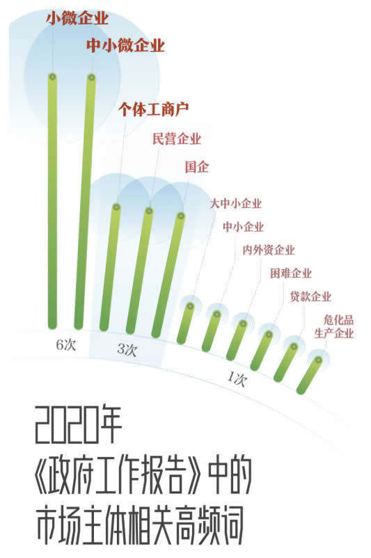 在今年的報(bào)告中,跟市場(chǎng)主體相關(guān)的詞里,“小微企業(yè)”提及次數(shù)最多,總計(jì)12次。其中6次為單獨(dú)提及,還有6次是列入“中小微企業(yè)”一詞中。足以證明對(duì)“小微企業(yè)”這一就業(yè)主要“容納器”的重視。