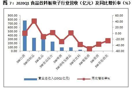 2020年第一季度,盡管受疫情影響,但受益于龍頭公司的強(qiáng)勁表現(xiàn),食品飲料行業(yè)仍力保營(yíng)收基本持平,實(shí)現(xiàn)營(yíng)業(yè)收入合計(jì)1917.94億元,同比增長(zhǎng)0.21%;實(shí)現(xiàn)歸母凈利潤(rùn)390.7人億元,同比下降0.66%。