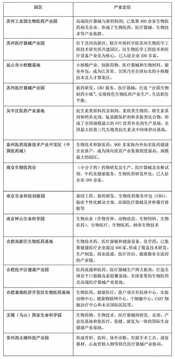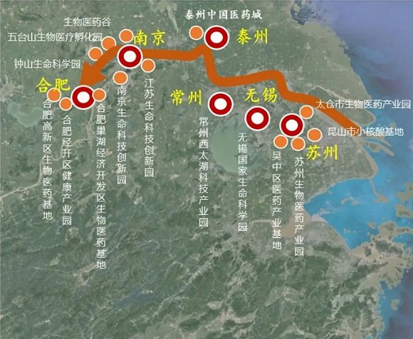 沿長江經(jīng)濟(jì)帶生物醫(yī)藥產(chǎn)業(yè)主要集聚在蘇州、泰州、南京、合肥等城市。蘇州實(shí)行產(chǎn)品差異化定位發(fā)展,生物醫(yī)藥產(chǎn)業(yè)呈現(xiàn)高質(zhì)量發(fā)展態(tài)勢;泰州前沿醫(yī)藥研究與制造上全國領(lǐng)先;南京生命健康產(chǎn)業(yè)資源加速集聚,但產(chǎn)業(yè)資源布局分散且園區(qū)定位存在同質(zhì)化;安徽產(chǎn)業(yè)定位很高,但目前正處在成長期。