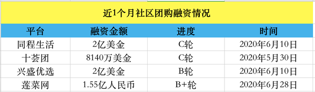上半年,以社區(qū)為中心的社區(qū)團購成為生鮮電商平臺“孵化”出來的新業(yè)態(tài)。興盛優(yōu)選、同程生活、十薈團社區(qū)團購平臺等都在融資環(huán)境較差的大背景下拿到了資金。其中,同程生活在6月完成了2億美元的C輪融資,興盛優(yōu)選兩輪合計獲得7億美元融資;6月27日,蓮菜網(wǎng)宣布獲得融資1.55億元;此外,十薈團也完成了新一輪C1輪融資,金額為8140萬美元。