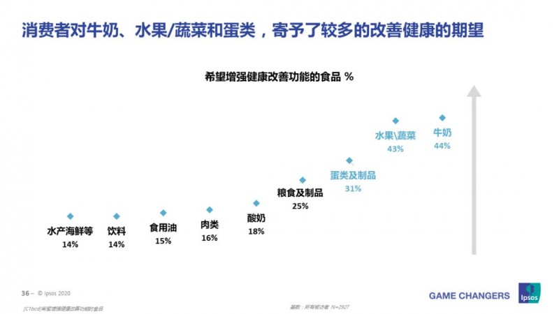 免疫力不足會(huì)產(chǎn)生的各項(xiàng)身體問題,普通消費(fèi)者們認(rèn)為是由于自身身體太過疲勞所導(dǎo)致,因此會(huì)優(yōu)先選擇調(diào)整日常作息或通過飲食來改善自身狀況。消費(fèi)者對牛奶、水果/蔬菜和蛋類寄予了較多的改善健康的期望,他們希望通過食用含有豐富營養(yǎng)價(jià)值的食品,調(diào)理身體。