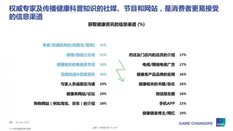 在信息獲取上,權(quán)威專家(35%)及傳播健康科普知識(shí)的社媒(31%)、節(jié)目(30%)和網(wǎng)站(30%),更容易被消費(fèi)者接納。