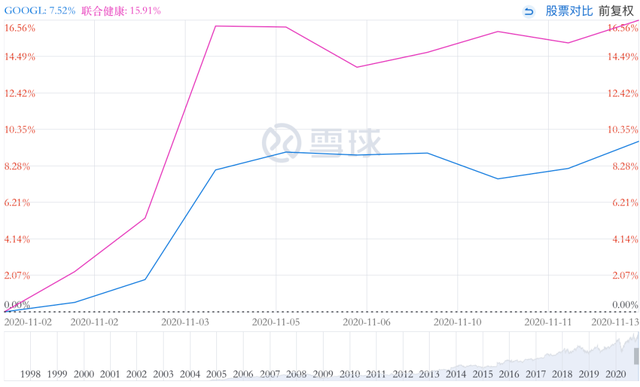 得益于上述戰(zhàn)略布局,過(guò)去十年間,聯(lián)合健康的市值已經(jīng)翻了10倍以上,連谷歌的增幅也難望其項(xiàng)背。