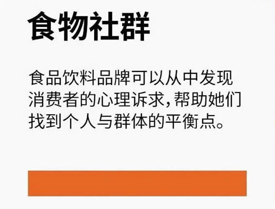“新冠疫情增進(jìn)了消費(fèi)者對社區(qū)的關(guān)注。消費(fèi)者認(rèn)識到相互支持的重要性,消費(fèi)者將出于社交和友情以志同道合者社區(qū)形式進(jìn)行組織。食品、飲料和餐飲品牌可以充分利用自身定位,與消費(fèi)者可能聯(lián)系到身份的共同興趣和愛好保持一致,品牌可以積極地把粉絲個體匯聚起來。按照共同擁有的品牌加以界定,社區(qū)將擴(kuò)大人們的社交圈并帶來大有作為的集體方式。”