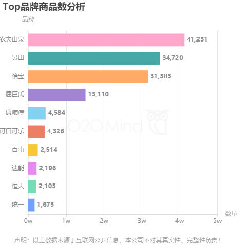 ▲ 深圳盒馬平臺各飲用水品牌商品數(shù)量