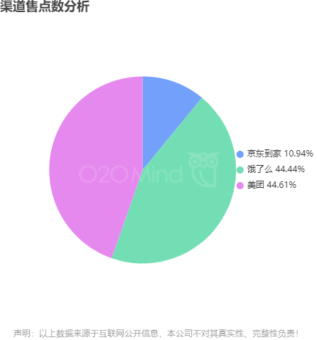 據(jù)O2OMind數(shù)據(jù)顯示,在三大O2O平臺(餓了么、美團、京東到家)中,美團銷售包裝飲用水的商家數(shù)最多,其次是餓了么,兩大外賣平臺包裝飲用水商家數(shù)量占比超80%。