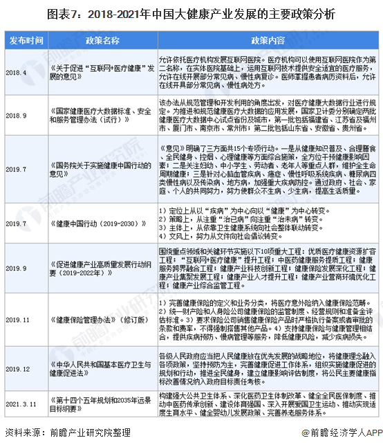 圖表7:2018-2021年中國大健康產(chǎn)業(yè)發(fā)展的主要政策分析
