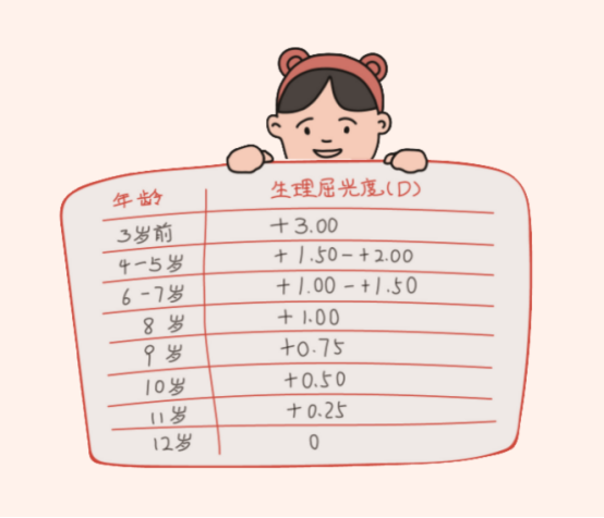 每個(gè)年齡孩子的遠(yuǎn)視儲(chǔ)備量可以參考下表: