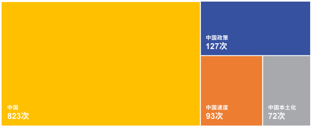 在訪談中被提及最多的詞是“中國”。具體來看,在談及“中國”時,最主要被提及的是:中國政策、中國速度和中國本土化。