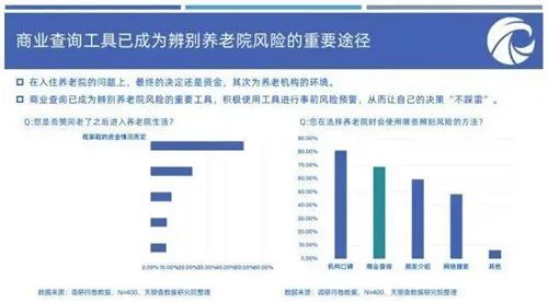 掌握更全面的信息,降低養(yǎng)老決策的風(fēng)險(xiǎn),顯得十分重要。報(bào)告調(diào)研數(shù)據(jù)顯示,在選擇養(yǎng)老院時,超6成用戶都會使用諸如天眼查等商業(yè)查詢工具查詢機(jī)構(gòu)資質(zhì),輔助決策;超6成人員對未來養(yǎng)老資金存在擔(dān)心,但僅有1成不到的人對現(xiàn)行社會保險(xiǎn)體制及其相關(guān)政策“非常了解”。