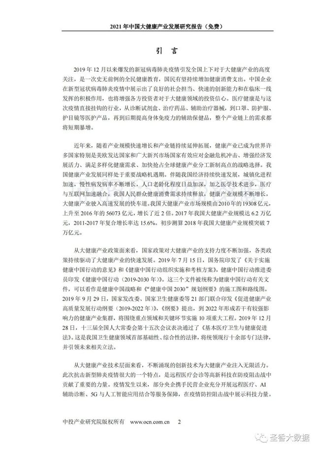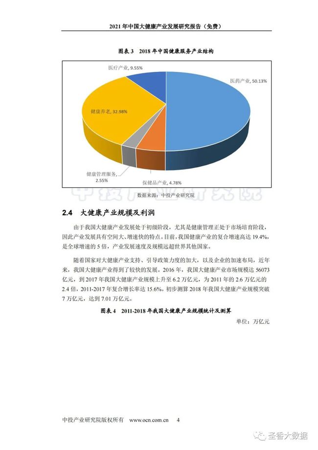 2019 年 12 月以來(lái)爆發(fā)的新冠病毒肺炎疫情引發(fā)全國(guó)上下對(duì)于大健康產(chǎn)業(yè)的高度關(guān)注,是一次史無(wú)前例的全民健康教育,國(guó)民有望持續(xù)增加健康消費(fèi)支出。中國(guó)企業(yè)在新型冠狀病毒肺炎疫情中展示出了良好的社會(huì)擔(dān)當(dāng)、快速的創(chuàng)新能力和在臨床一線發(fā)揮的積極作用,也將增強(qiáng)各方投資者對(duì)于大健康領(lǐng)域的投資信心。醫(yī)療健康是與這次疫情直接掛鉤的行業(yè),從診斷試劑盒、治療藥品、輔助治療器械,到口罩、防護(hù)服、護(hù)目鏡等醫(yī)護(hù)產(chǎn)品,再到后期提高身體免疫力的輔助保健品,整個(gè)產(chǎn)業(yè)鏈上的需求都將短期暴增。近年來(lái),隨著產(chǎn)業(yè)規(guī)??焖僭鲩L(zhǎng)和產(chǎn)業(yè)鏈持續(xù)延伸拓展,健康產(chǎn)業(yè)已成為世界許多國(guó)家特別是美歐發(fā)達(dá)國(guó)家和廣大新興市場(chǎng)國(guó)家有效應(yīng)對(duì)金融危機(jī)沖擊、增強(qiáng)經(jīng)濟(jì)發(fā)展活力、滿足多樣化健康需求、加快搶占全球健康產(chǎn)業(yè)分工新制高點(diǎn)的戰(zhàn)略選擇。我國(guó)健康產(chǎn)業(yè)發(fā)展同樣處于重要戰(zhàn)略機(jī)遇期。伴隨我國(guó)經(jīng)濟(jì)持續(xù)快速發(fā)展,城鎮(zhèn)化進(jìn)程加速,慢性病發(fā)病率不斷增長(zhǎng),人口老齡化程度日益加深,加之醫(yī)學(xué)技術(shù)進(jìn)步,醫(yī)療與互聯(lián)網(wǎng)加速融合,我國(guó)人民群眾健康消費(fèi)需求持續(xù)釋放,健康產(chǎn)業(yè)規(guī)模不斷增長(zhǎng),大健康產(chǎn)業(yè)駛?cè)敫咚侔l(fā)展的快車道。我國(guó)大健康產(chǎn)業(yè)市場(chǎng)規(guī)模由2010年的19308億元,上升至 2016 年的 56073 億元,增長(zhǎng)了近 2 倍。2017 年我國(guó)大健康產(chǎn)業(yè)規(guī)模達(dá) 6.2 萬(wàn)億元,2011-2017 年復(fù)合增長(zhǎng)率達(dá) 15.6%。初步測(cè)算 2018 年我國(guó)大健康產(chǎn)業(yè)規(guī)模突破 7萬(wàn)億元。