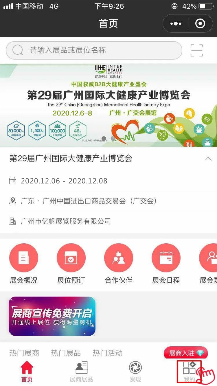STEP 2:點(diǎn)擊「我的」—「進(jìn)入展商中心」;