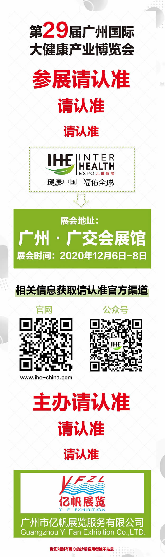 IHE China廣州國(guó)際大健康展(簡(jiǎn)稱IHE China大健康展)于2004年3月在廣州創(chuàng)辦,已成功舉辦至第29屆。自2013年開(kāi)始,舉辦地點(diǎn)一直都在廣州·廣交會(huì)展館。