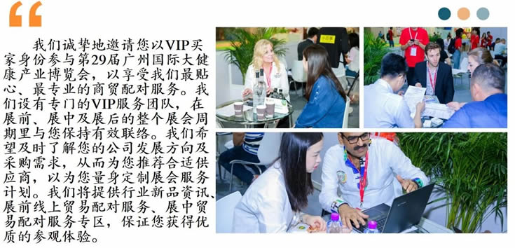 “特邀買家服務(wù)”是IHE China廣州國際大健康展組委會(huì)針對(duì)有真實(shí)大健康類產(chǎn)品采購意向和需求的上下游企業(yè)單位、終端用戶等機(jī)構(gòu)參觀觀眾提供的VIP專享服務(wù)。如果您是大健康產(chǎn)業(yè)上下游設(shè)備商、終端用戶企業(yè)\大健康企業(yè)的市場(chǎng)/技術(shù)/采購總監(jiān)、企業(yè)負(fù)責(zé)人或?qū)尤说?,只要您有真?shí)的采購意向和需求,向我們發(fā)出申請(qǐng),就可成為我們的特邀買家