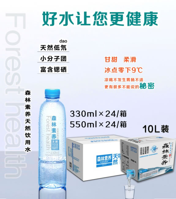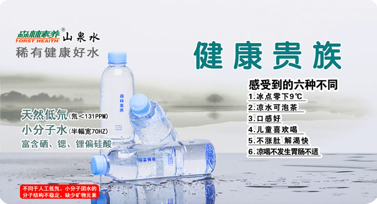 森林素養(yǎng)山泉水,產(chǎn)自內(nèi)蒙古呼倫貝爾根河—中國冷極,是高海拔,高寒環(huán)境,周邊沒有工業(yè)、農(nóng)業(yè),原生態(tài)保存完好,經(jīng)權(quán)威機(jī)構(gòu)鑒定為天然低氘、小分子團(tuán)、高品質(zhì)的天然山泉水,衛(wèi)生部指定的三大天然飲用水供應(yīng)方之一。榮獲2020梵凈山國際天然飲用水博覽會評比第一名。