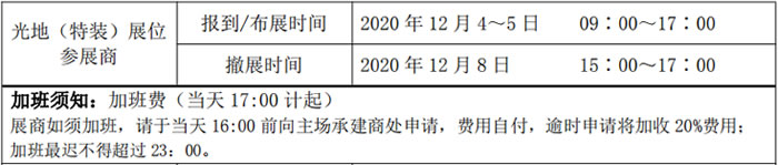 加班:展館方不接受各參展商單獨申請,如有加班,展商向所在區(qū)域的承建商申請,承建商向統(tǒng)籌科統(tǒng)一下單,由統(tǒng)籌科負責(zé)以工作單方式在16:00前通知客服中心相關(guān)部門,請憑單安排加班服務(wù),并對辦理加班手續(xù)的參展商及相關(guān)車輛給予放行。