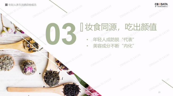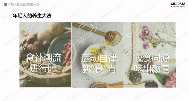 而年輕人養(yǎng)生也越來(lái)越明顯地表現(xiàn)出四大趨勢(shì):隨時(shí)隨地、花式混搭、四季養(yǎng)生、吃出顏值。