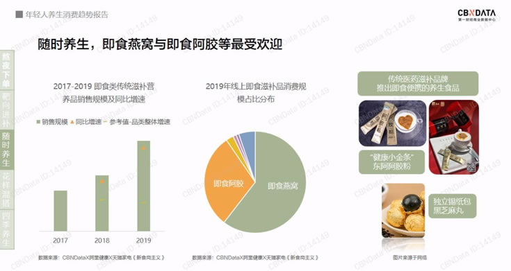 從關(guān)注事后治療,到關(guān)注事前預(yù)防。養(yǎng)生產(chǎn)品“零食化”趨勢(shì)明顯,隨時(shí)隨地健康輕松養(yǎng)生,滋補(bǔ)和營(yíng)養(yǎng)很重要;對(duì)年輕人而言,更多人傾向于選擇具有功能性食品/保健產(chǎn)品,以輔助健康調(diào)理(提高免疫力、延緩衰老)。