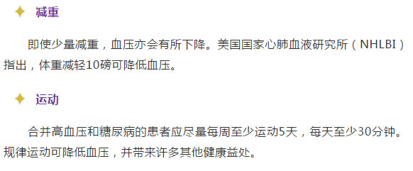 生活方式因素是降低高血壓并保持血壓水平正常的最佳方法。有大量證據(jù)表明,糖尿病患者控制血壓可降低并發(fā)癥風(fēng)險。