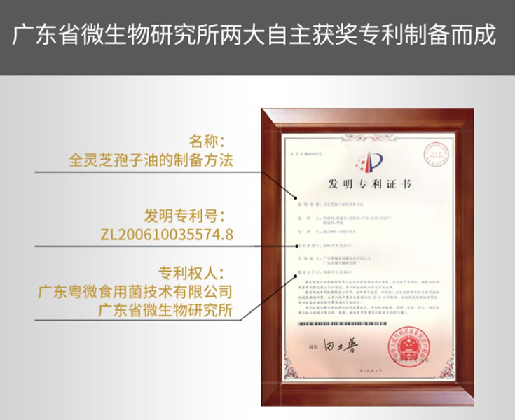 粵微靈芝孢子油軟膠囊系廣東省微生物研究所承擔(dān)的重大科技專項(xiàng)成果轉(zhuǎn)化,采用核心專利破壁技術(shù)和小分子超濾截留技術(shù),結(jié)合超臨界CO2萃取濃縮工藝,被評(píng)為廣東省自主創(chuàng)新產(chǎn)品、廣東省高新技術(shù)產(chǎn)品。本品是以靈芝孢子油、明膠、甘油、純化水為主要原料制成的保健食品。經(jīng)動(dòng)物功能試驗(yàn)證明,具有增強(qiáng)免疫力、對(duì)化學(xué)性肝損傷有輔助保護(hù)功能的保健功能。
