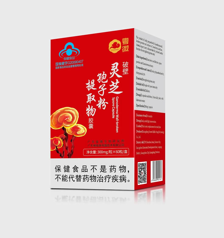 粵微破壁靈芝孢子粉提取物膠囊是獲國(guó)家食藥監(jiān)總局批準(zhǔn)的保健食品,采用雙專利技術(shù),以破壁靈芝孢子粉和靈芝提取物為原料精制而成。其生物活性成分高濃縮,靈芝粗多糖≥5%,靈芝三萜含量≥2%。經(jīng)動(dòng)物功能試驗(yàn)證明,具有增強(qiáng)免疫力的保健功能。