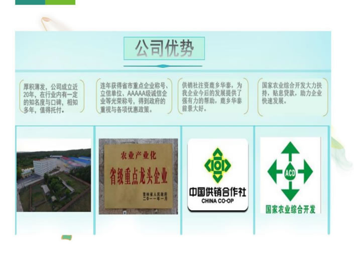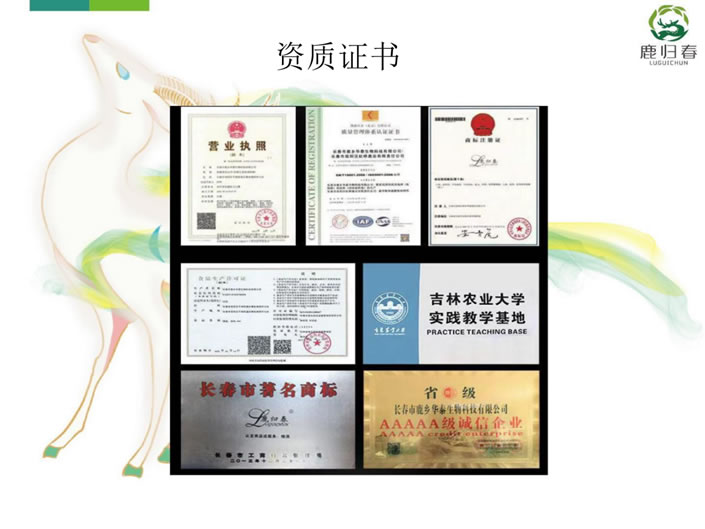 長(zhǎng)春市鹿鄉(xiāng)華泰生物科技有限公司位于吉林雙陽(yáng),成立于2001年,現(xiàn)為吉林省農(nóng)業(yè)產(chǎn)業(yè)化省級(jí)重點(diǎn)龍頭企業(yè)、吉林農(nóng)業(yè)大學(xué)教學(xué)示范基地、省級(jí)梅花鹿種鹿基地。占地面積43000多平方米,擁有標(biāo)準(zhǔn)化生產(chǎn)線,旗下現(xiàn)有9大系列百余種產(chǎn)品,可供客戶選擇, “做鹿產(chǎn)品行業(yè)的龍頭,做保健品行業(yè)的精英?!笔侨A泰人的愿景與拼搏的動(dòng)力。