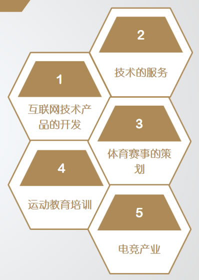 業(yè)務(wù)不僅僅只有體育產(chǎn)品的銷售,也涉及有互聯(lián)網(wǎng)技術(shù)產(chǎn)品的開發(fā),技術(shù)的服務(wù),體育賽事的策劃,運(yùn)動(dòng)教育培訓(xùn),電競(jìng)產(chǎn)業(yè)等,與健身房,瑜伽館等運(yùn)動(dòng)場(chǎng)所均有合作,為他們提供優(yōu)質(zhì)的、健康的食品,體育產(chǎn)品及器材。