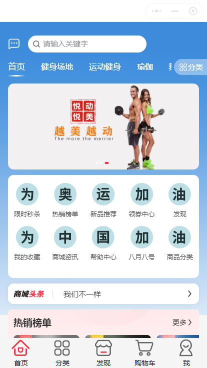 悅動(dòng)悅美,是一款集銷售、健身為一體的APP。在上面你不僅可以購買運(yùn)動(dòng)器材裝備,也可以查找到附近的健身場(chǎng)所,也可以預(yù)定健身課程等。而這款A(yù)PP也分為三個(gè)版本:少年版,青年版,老年版;針對(duì)不同的群體,提供不同的服務(wù)。旨在響應(yīng)體育強(qiáng)國的號(hào)召,提高人們對(duì)體育運(yùn)動(dòng)的意識(shí),強(qiáng)健體魄,為全民健身奉獻(xiàn)自己的一點(diǎn)力量。