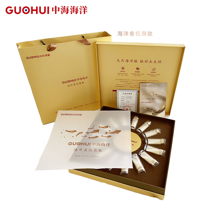 利用符合GB 2733-2015 食品安全國(guó)家標(biāo)準(zhǔn)鮮、凍動(dòng)物性水產(chǎn)品標(biāo)準(zhǔn)的冷凍鳀魚、沙丁魚作為原料,經(jīng)過(guò)符合《食品添加劑使用標(biāo)準(zhǔn)》規(guī)定的食品用酶制劑酶解,脫色、超濾以及納濾膜分離、噴霧干燥等一些列技術(shù)制取的海洋魚低聚肽,產(chǎn)品符合GB/T 22729-2008 海洋魚低聚肽粉。
