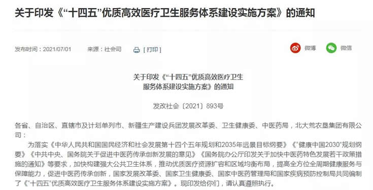 近年來,黨中央、國務(wù)院高度重視中醫(yī)藥傳承創(chuàng)新發(fā)展,相繼印發(fā)了《關(guān)于促進中醫(yī)藥傳承創(chuàng)新發(fā)展的意見》、《“十四五”優(yōu)質(zhì)高效醫(yī)療衛(wèi)生服務(wù)體系建設(shè)實施方案》等政策措施文件,鼓勵和支持中醫(yī)藥事業(yè)和產(chǎn)業(yè)高質(zhì)量發(fā)展,推動中醫(yī)藥走向世界。