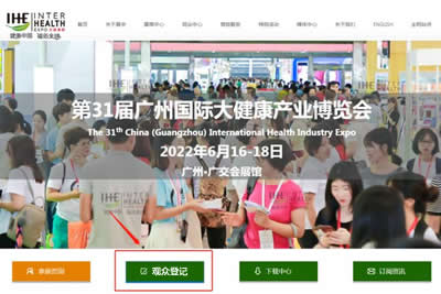 2022第31屆廣州國際大健康產(chǎn)業(yè)博覽會(簡稱:IHE China),將于6月16日-18日在廣州·廣交會展館舉行。展品范圍涵蓋:健康營養(yǎng)食品、滋補(bǔ)品、家庭醫(yī)療器械、高端水及高端進(jìn)口食品、食品包裝機(jī)械、中醫(yī)藥及養(yǎng)生產(chǎn)品、婦幼健康、健康管理/服務(wù)、健康糧油及有機(jī)食品等十余個專業(yè)領(lǐng)域,上千家全球領(lǐng)軍品牌,上萬種健康產(chǎn)品,預(yù)計效果50,000㎡展出面積,60,000+專業(yè)觀眾,1,000+展覽企業(yè)。