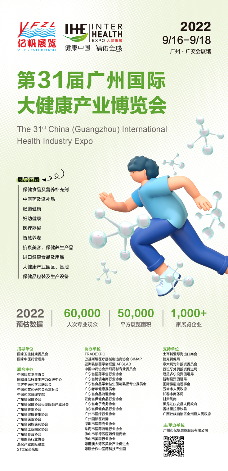 IHE大健康展會包含:健康食品及營養(yǎng)補充劑、 進口健康食品及用品、 中醫(yī)藥及滋補品、 氫健康產(chǎn)品及高端水、 智慧養(yǎng)老/健康管理、 家庭醫(yī)療設(shè)備、 抗衰美容及健康睡眠、 婦幼健康、 益生菌/腸道健康、 跨境醫(yī)療及醫(yī)療旅游、 生物制品及抗衰美容及睡眠健康、 體育健康、 大健康產(chǎn)業(yè)園區(qū)/基地、 包裝及生產(chǎn)設(shè)備 等展覽專區(qū)。IHE大健康展會期待您的到來!