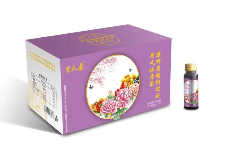 【配 料 表】水,菊粉(食用量≤15克/天),冷凍血橙濃縮汁,蘋果汁,海洋魚低聚肽,低聚果糖,丹鳳牡丹花瓣提取物,透明質(zhì)酸鈉(食用量≤200毫克/天),牛磺酸,維生素C,檸檬酸,殼寡糖(食用量≤0.5克/天),山梨酸鉀。
