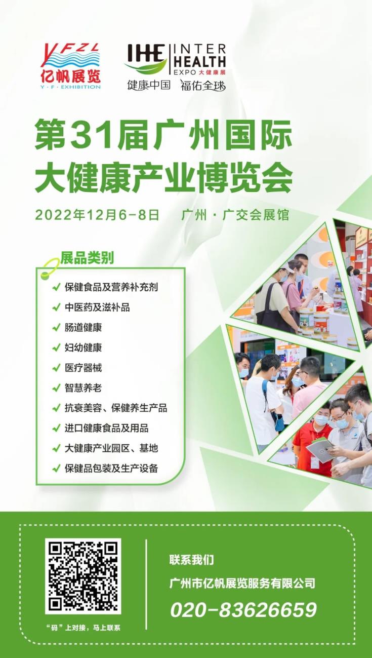 IHE China IHE第34屆廣州國(guó)際大健康產(chǎn)業(yè)博覽會(huì)將于2026年6月4-6日在廣州?廣交會(huì)展館舉行,大健康博覽會(huì)由廣州市億帆展覽服務(wù)有限公司主辦,是國(guó)內(nèi)首個(gè)提出“大健康博覽會(huì)”概念。大健康展會(huì)已連續(xù)成功舉辦到第34屆,已成為亞太地區(qū)頗具規(guī)模的大健康博覽會(huì),2023年榮獲廣州市商務(wù)局頒發(fā)“成功舉辦18年”獎(jiǎng)牌!。