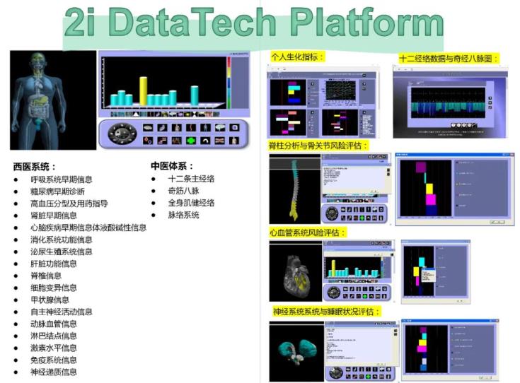 中心主要是以中醫(yī)為基礎(chǔ)、無(wú)創(chuàng)體檢設(shè)備為基礎(chǔ)手段,打造一個(gè)便民的、高體驗(yàn)感的互聯(lián)網(wǎng)大健康精準(zhǔn)服務(wù)平臺(tái)(2i DataTech)。