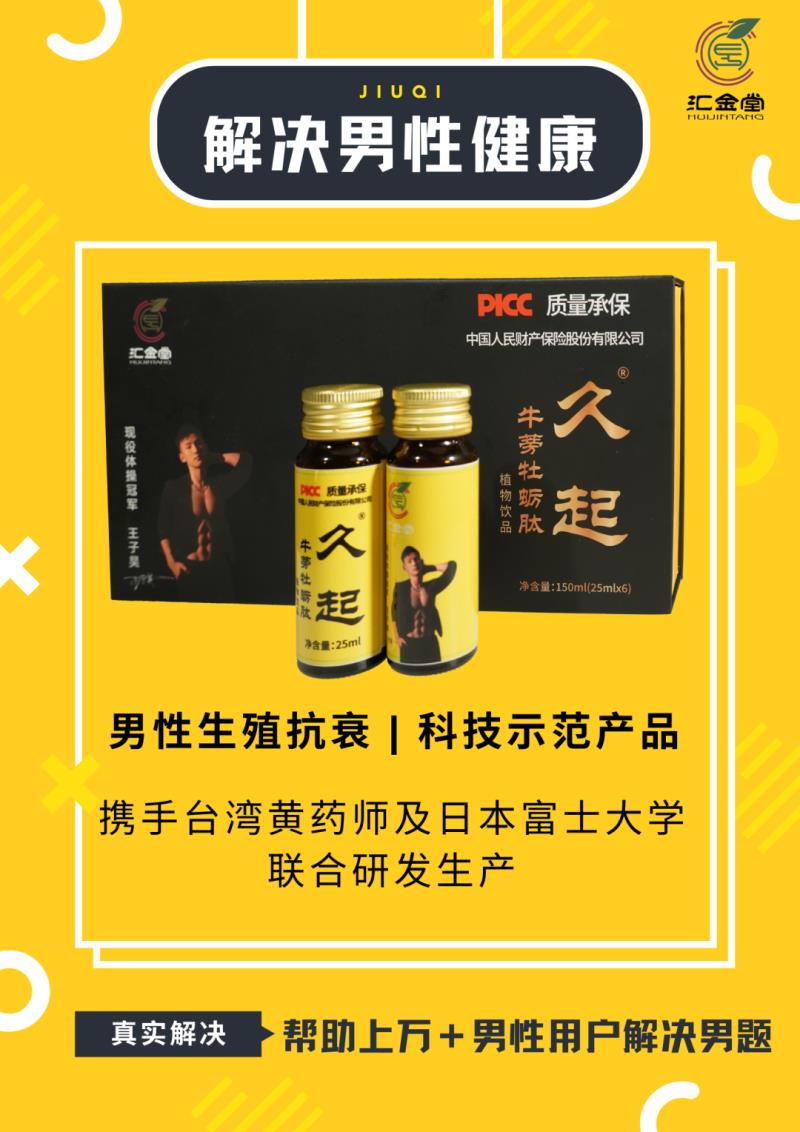 久起是一款由匯金堂攜手臺(tái)灣黃藥師及日本富士大學(xué)合作生產(chǎn)研發(fā)的一款男性性生殖保養(yǎng)的高端品牌。遵照藥食同源,匯集頂級(jí)補(bǔ)腎動(dòng)植物的一種優(yōu)良食物補(bǔ)充品。全面維持充沛活力。?物科技與中醫(yī)膳食雙核技術(shù)頂配制備。